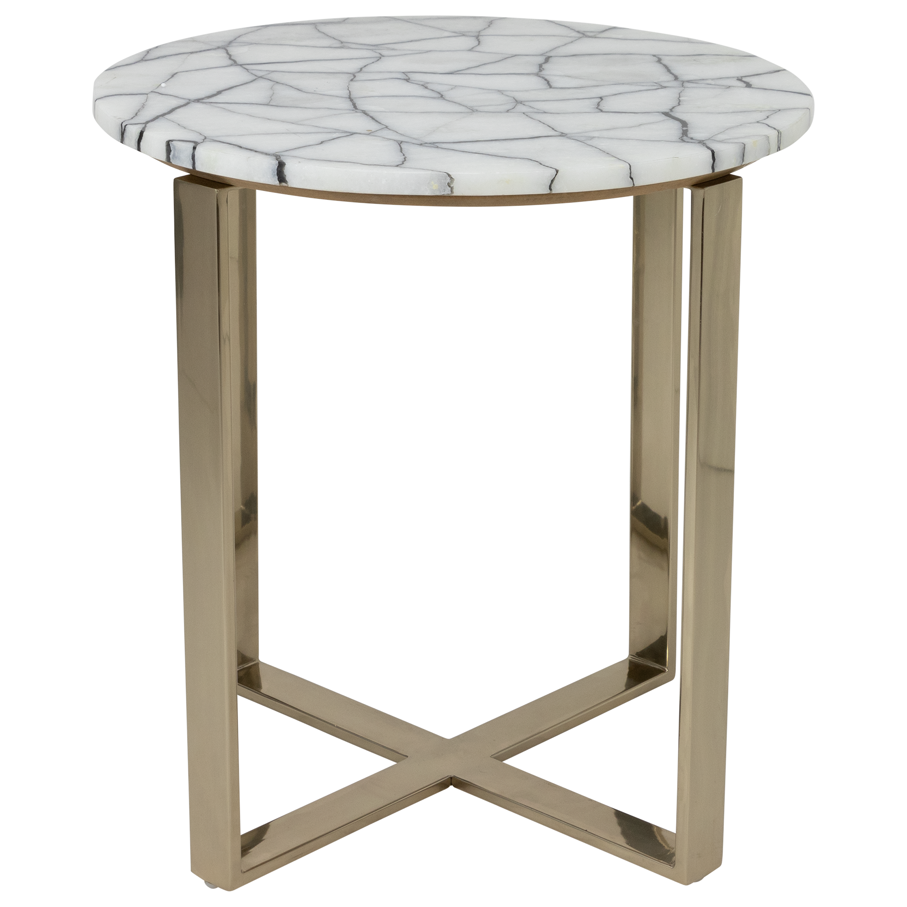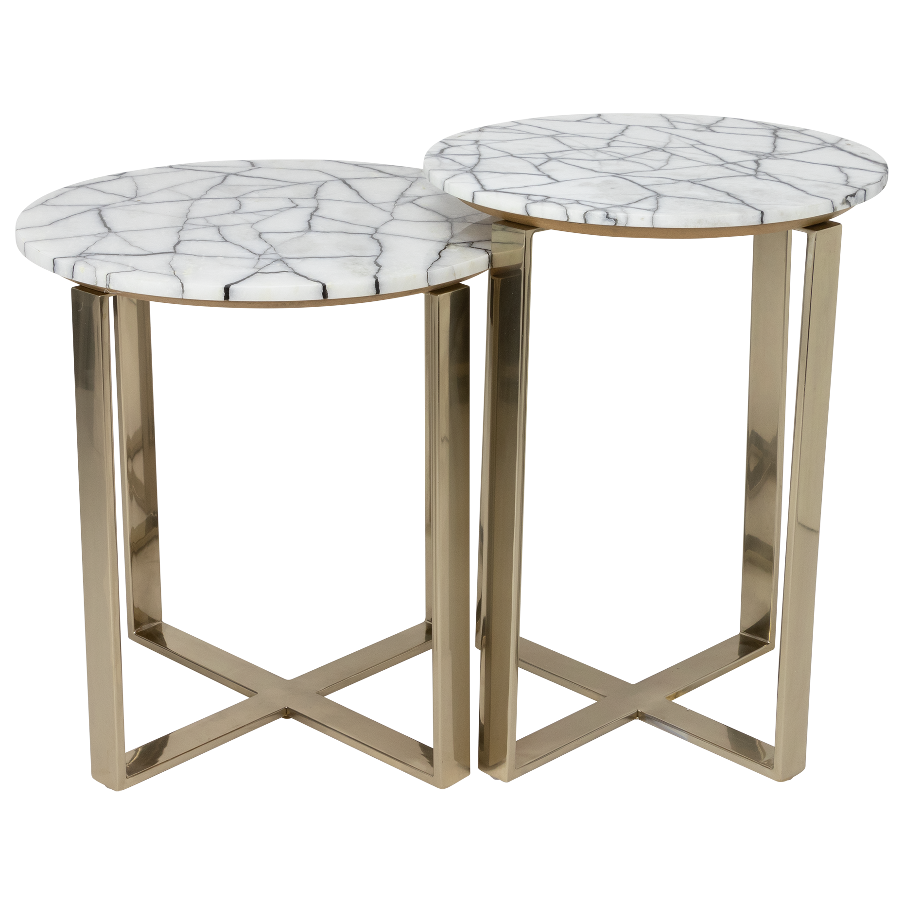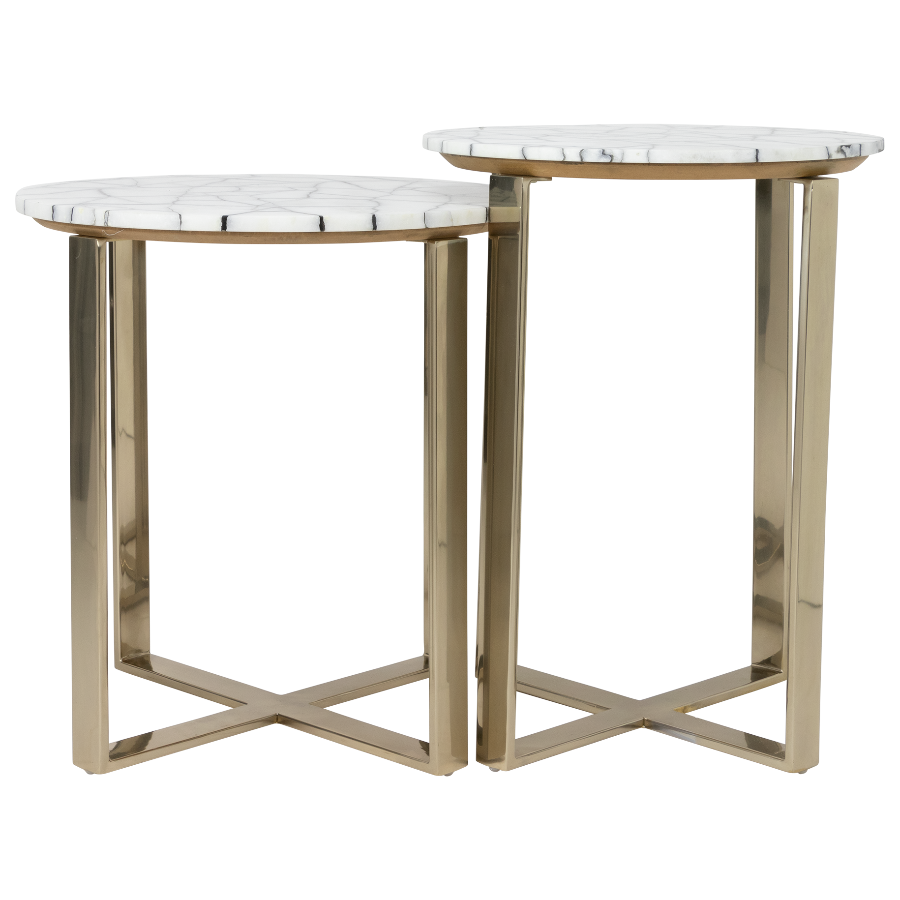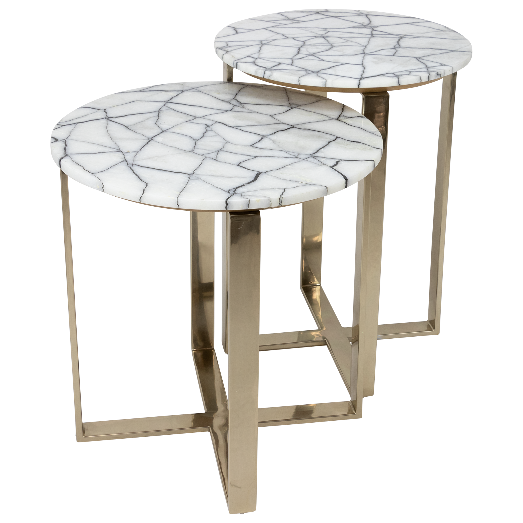 Elegant gold accent tables with real black and white stone tops finished with a gold metal stand.